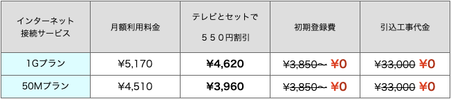 ※テレビとネットのセットで550円割引!テレビ加入者は引込工事代金無料!